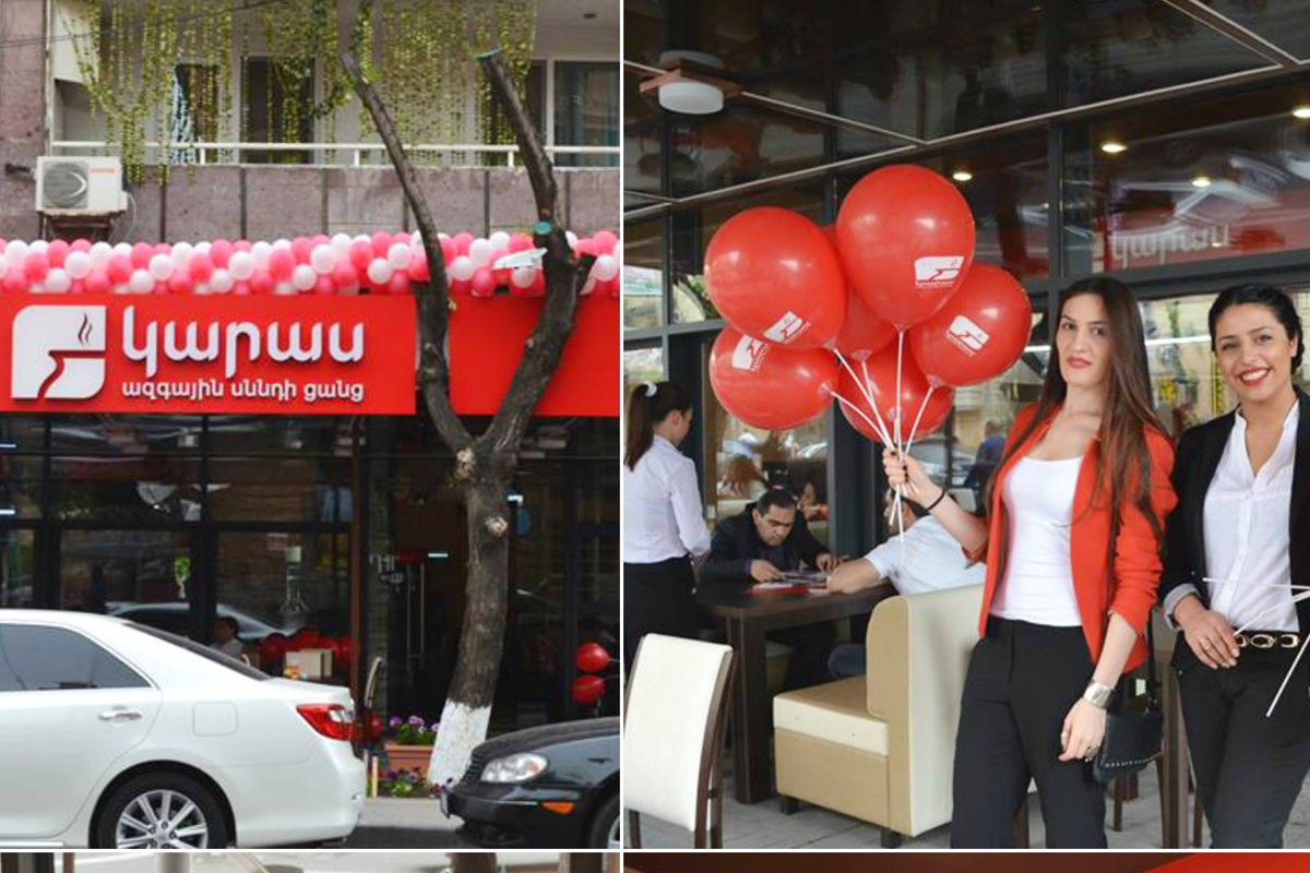 <p>28 апреля сеть национальной еды КАРАС открыла свою 11-ую точку обслуживания - по адресу Туманяна 19.</p><p>Шестой по счету ресторан сети расположен в малом центре столицы. Особенностью нового ресторана является открытое кафе. Oбщая площадь объекта – 180 кв.м. Ассортимент, представленный в ресторане, насчитывает около 300 товарных единиц, основу меню составят лучшие блюда армянской национальной кухни.</p><p><img alt="" src="https://www.karas.am/storage/images/Karas.jpg" style="height:300px; width:300px"></p><p>«Наш новый ресторан расположен в самом сердце столицы.&nbsp;В нем сочетаются армянские традиции и современная динамика. Здесь посетителей ждет уютная атмосфера, отменная кухня и демократичные цены. Ресторан идеально соответствует запросам жителей современного мегаполиса. Здесь можно пообедать с коллегами или деловыми партнерами, приятно провести время с друзьями или даже устроить романтический ужин за столиком летнего кафе», - отметил директор и совладелец компании Тигран Юзбашян.&nbsp;<br>Как и в остальных точках обслуживания сети, здесь будут доступны стандартные услуги: вкусная и быстрая доставка, возможность расчета банковскими картами, горячая линия для клиентов и т.п. Ресторан будет работать круглосуточно.</p><p>&nbsp;</p>