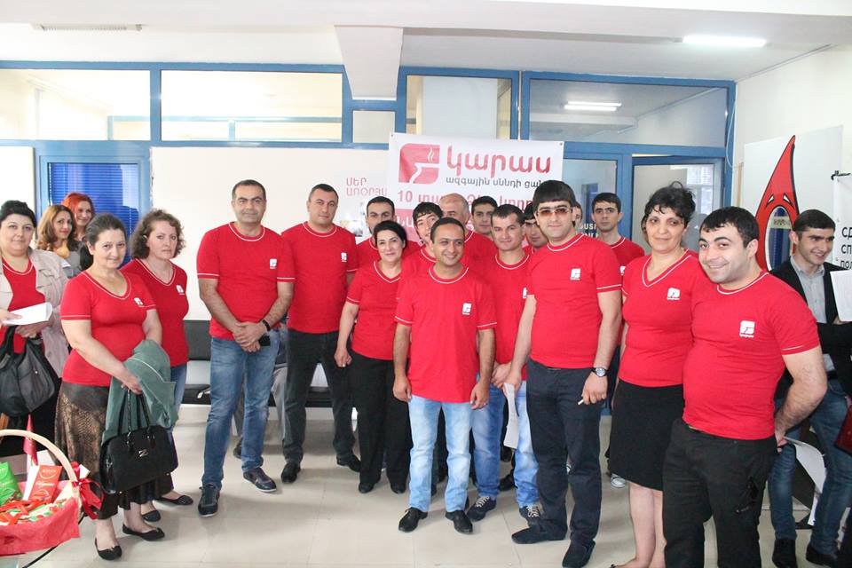 <p>Մայիսի 14-ին՝ առավոտյան ժամը 09:00-ից, Ռ.Օ. Յոլյանի անվ. Արյունաբանական կենտրոնում Կարաս ազգային սննդի ցանցի ողջ անձնակազմը շատ կարևոր քայլի է դիմել՝ հանձնելով արյուն և օգնելով "Նվիրիր Կյանք" հիմնադրամի երեխաներին, ովքեր տառապում են օնկոլոգիական, հեմոտոլոգիական և այլ ծանր հիվանդություններով:</p><p><img alt="" src="https://www.karas.am/media/wysiwyg/11167977_988856541126747_3665725797621393485_n.jpg" style="width:200px"></p><p>Բացի այդ, Կարասը նվիրել է БИ*2 խմբի բարեգործական համերգի տոմս, բոլոր այն կամավորներին, ովքեր նույնպես այսօր արյուն են հանձնել հիվանդ մանուկների համար:</p>