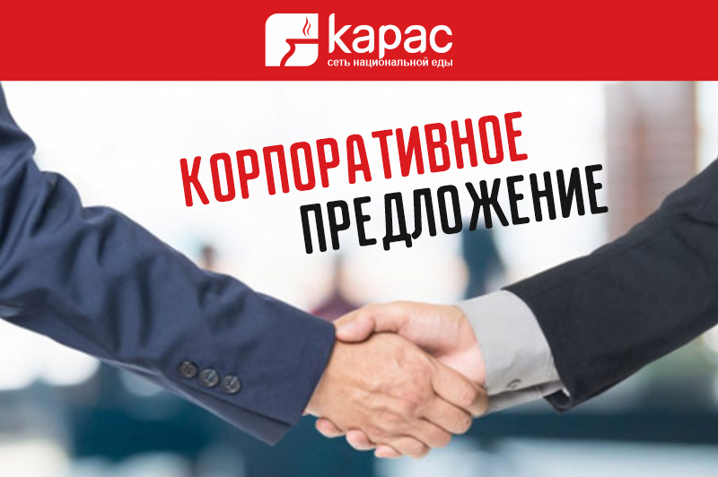 <p>Информируем,</p><p>что отныне Карас будет представлять более удобные и специальные предложения для корпоративных клиентов.</p><p>Мы предлагаем:</p><p>1. максимально выгодное сочетание цены и качества,</p><p>2. 300 + блюд,</p><p>3. быстрая доставка.</p><p>По вопросам сотрудничества звоните: 095 32 55 52.</p><p> </p>