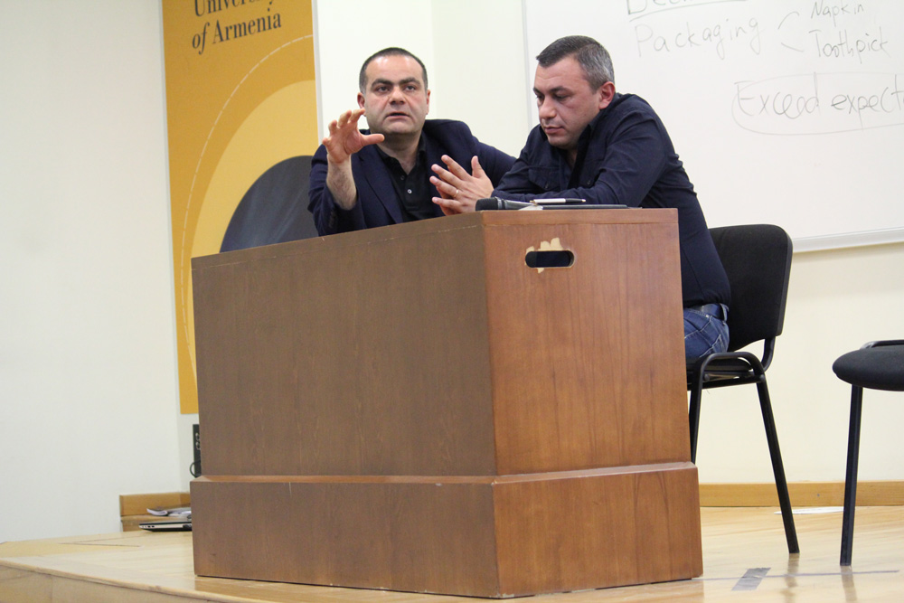 <p>December 8, 2016. The owners of national food chain KARAS Tigran Yuzbashyan and Ashot Harutyunyan held a meeting with the students of the American University of Armenia (AUA) and presented the concept of Karas’ brand, told about the history of Karas’ foundation, as well as the difficulties on their way and the overcoming of the last. As a result of the meeting, we can surely say that the topic of the discussion was “How to become a winner in the market and stay a leader for more than 11 years.”<br>During an interactive discussion that lasted more than two hours, the students got an opportunity to learn about the interesting way of Karas, the structure of their corporate governing and cooperation with “European Bank of Reconstruction and Development.” In the beginning of the meeting, it was announced that the authors of the hardest and the most interesting questions will be presented with Karas gift cards and every student put their effort to become a winner. The questions regarded Karas having the biggest delivery system in the market, healthy competition, leadership skills, as well as, how difficult or easy it is to work together being childhood friend. To this question, T. Yuzbashyan asnswered that that there's only one thing they cannot share with A. Harutyunyan and that is a lighter.<br>The work of Karas' leadership is a bright example of how working hard can help one achieve heights and hold their position of a leader, thus becoming a great motivation for the youth.&nbsp;</p><p>&nbsp;</p><p>&nbsp;</p>